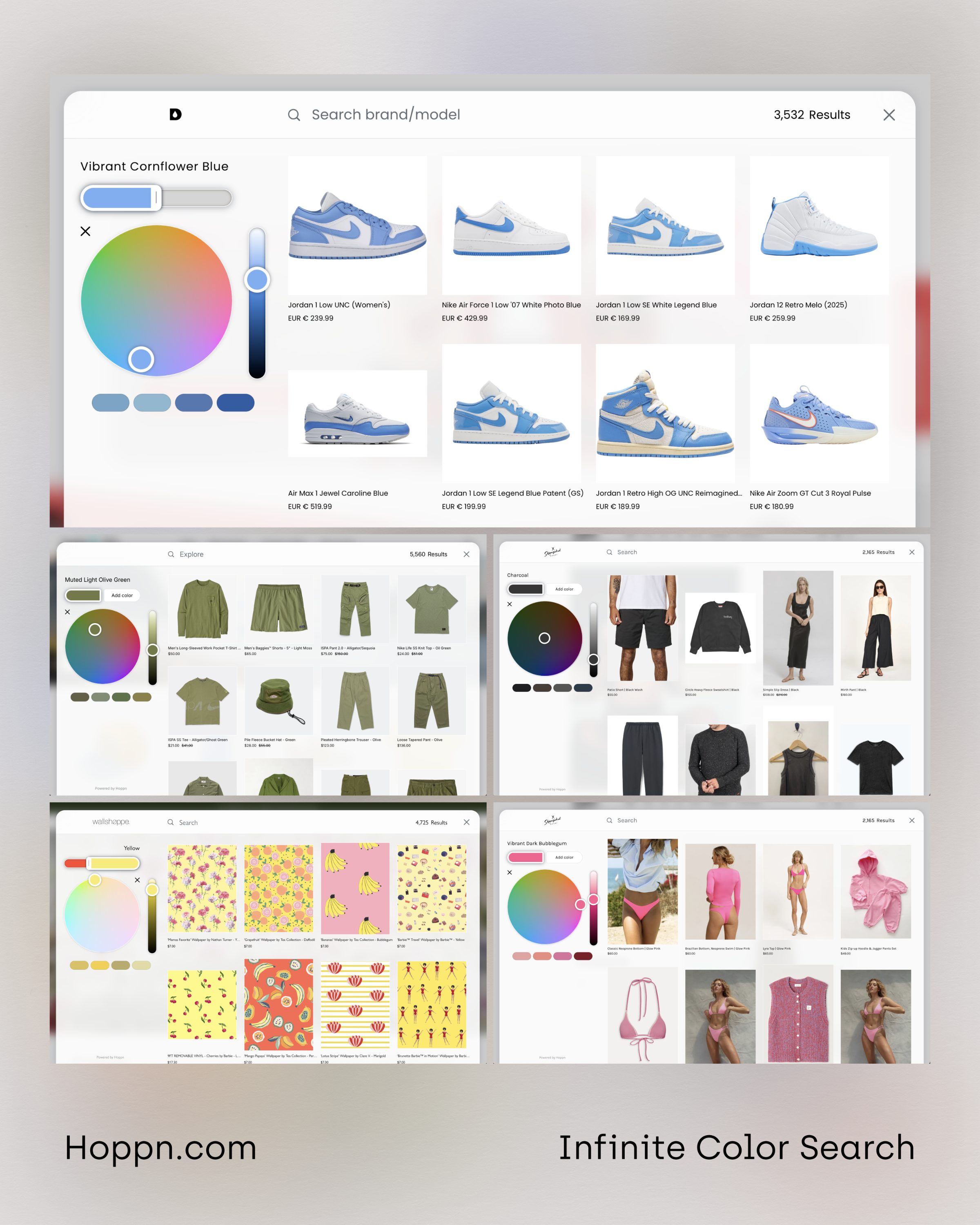 At Hoppn, we're leading the industry in color-based search for ecommerce. If you're curious, poke around our website! For more on all things color, visit our fun page for free creative tools and educational blog articles.